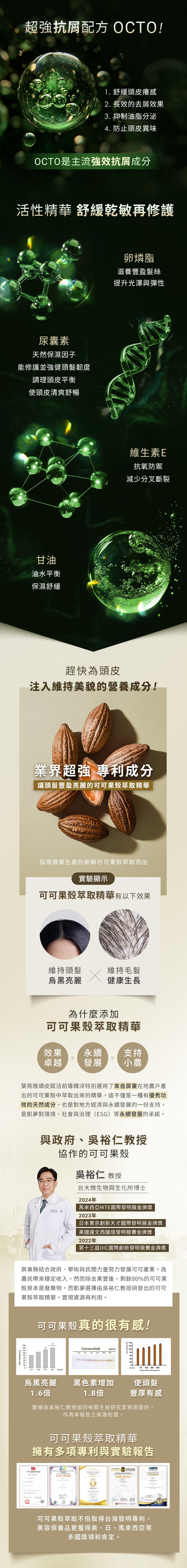 |茂密|可可果殼萃取物:頭髮蓬鬆,維持頭髮烏黑濃密