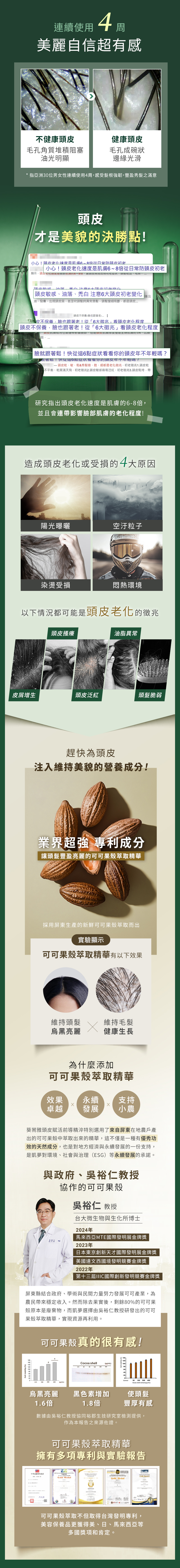 |茂密|可可果殼萃取物:頭髮蓬鬆,維持頭髮烏黑濃密