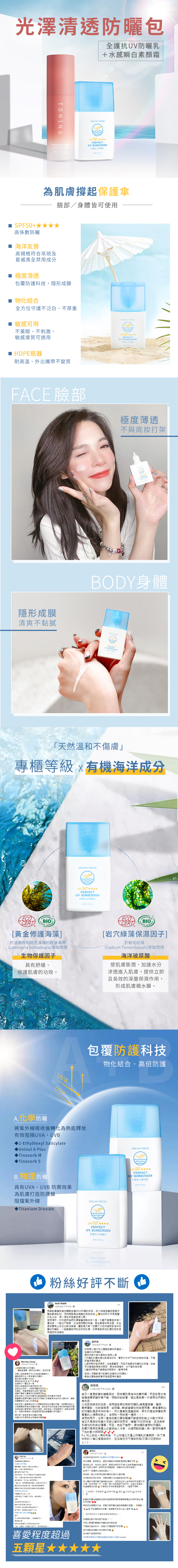 ✔全護抗UV防曬乳,同時符合帛琉與夏威夷海洋友善防曬最高標準