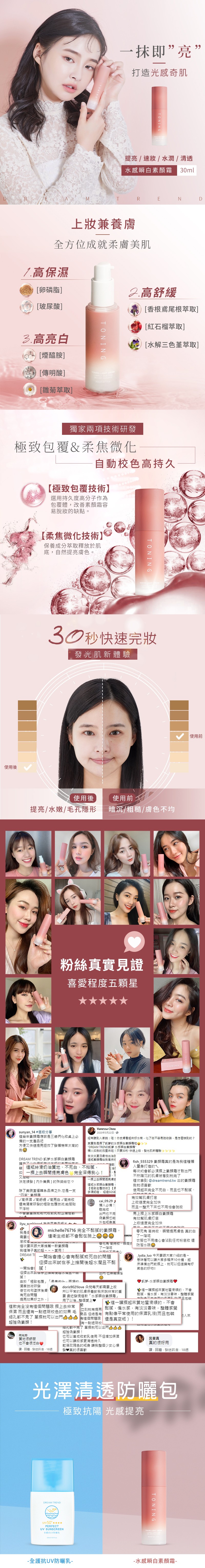 ✔水感瞬白素顏霜,完美提亮膚色;不過度死白