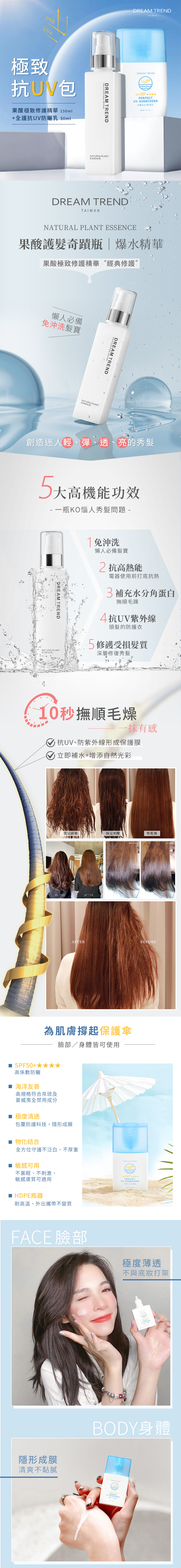 ✔果酸極致修護精華,乾濕髮均可使用;滋潤保護頭髮,有抗熱效果
