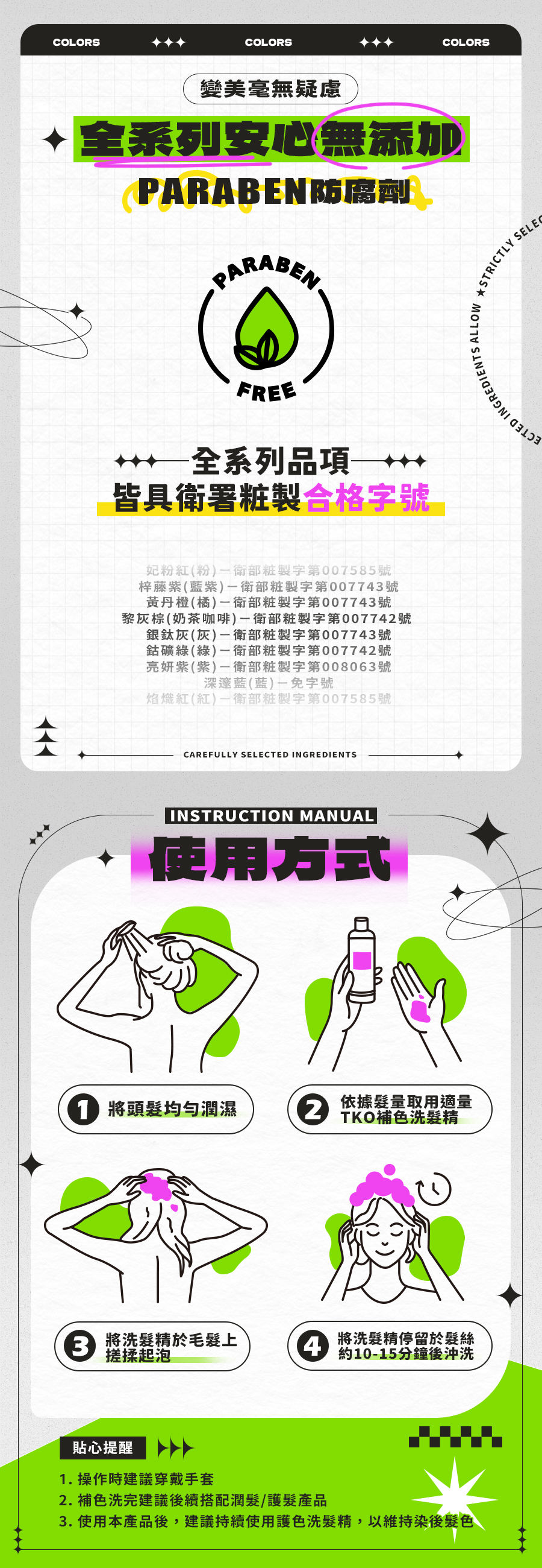 👉🏻使用本產品後,建議持續使用護色洗髮精,以維持染後髮色