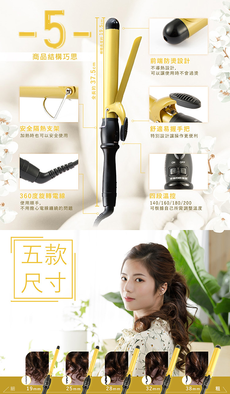 ✔電棒有五個尺寸,可選擇不同風格捲髮