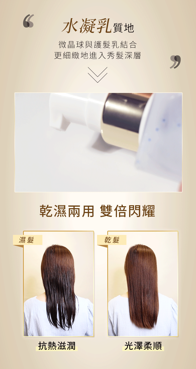 第三種👉使用電器前(吹風機、電捲棒、離子夾…等),取適量塗抹於髮中到髮尾
